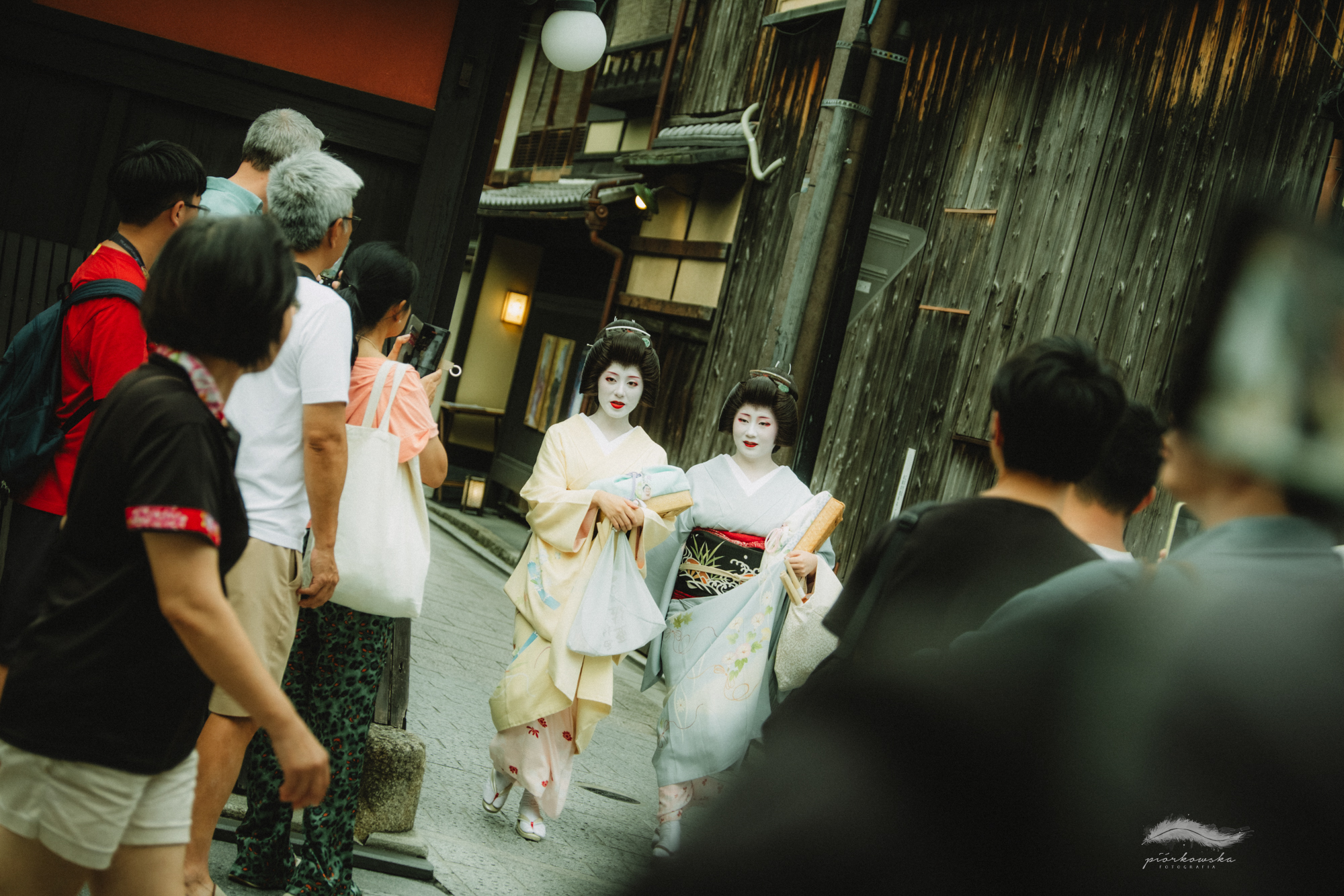 Japonia to kraj kontrastów: z jednej strony hipernowoczesna, z drugiej – pełna magicznych świątyń i duchowego wrażenia obecności. Czy da się policzyć wszystkie czerwone bramy Tori w słynnym Fushimi Inari? Mięliśmy wrażenie, że bramy się klonują, gdy nikt nie patrzy. Gion, urokliwa, stara dzielnica, która jest sercem tradycyjnego Kioto nas oczarowała. Wąskie uliczki, drewniane domki, lampiony – filmowy klimat. Zobaczyć prawdziwą Gejszę… idealny makijaż, obłędne kimono, sunącą ulicą jak zjawa. Na zawsze zostaniemy z poczuciem, że byliśmy świadkami czegoś magicznego. Jedzenie: Ach, jedzenie! Ramen, sushi, okonomiyaki, takoyaki, matcha w każdej postaci. Itadakimasu (smacznego) 🙂